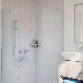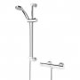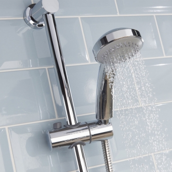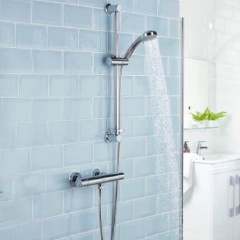 The thermostatic surface of the shower means that it is always cool to the touch, no matter how high you have your shower and the dual control means that flow and temperature can be controlled separately.
