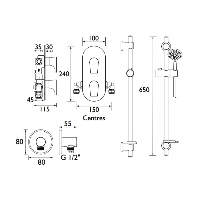 Bristan Hourglass Dual Concealed Mixer Shower with Shower Kit