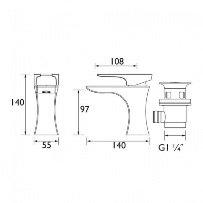 Bristan Hourglass Eco Start Basin Mixer Tap with Clicker Waste - Black