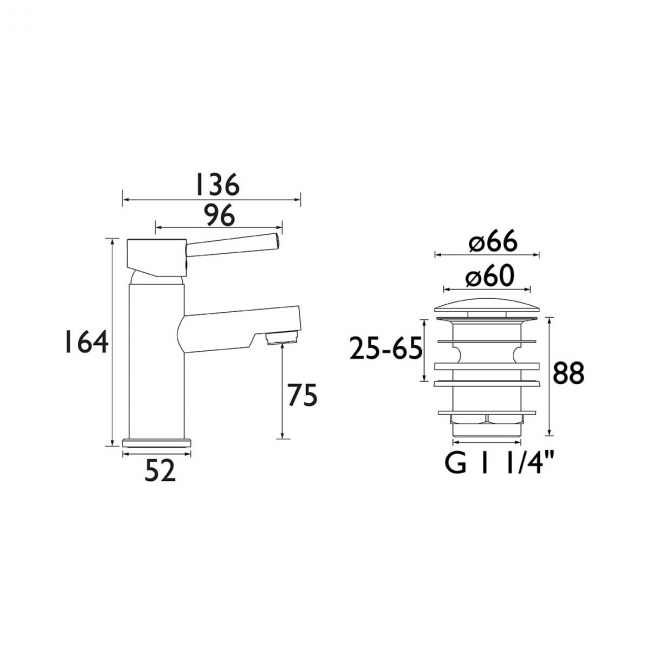 Base to Spout Reach75mm