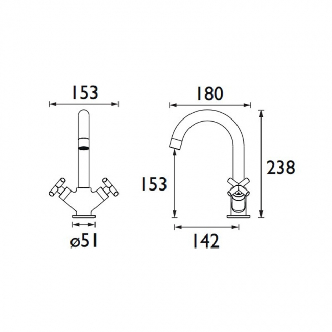 Tap Base to Spout153mm