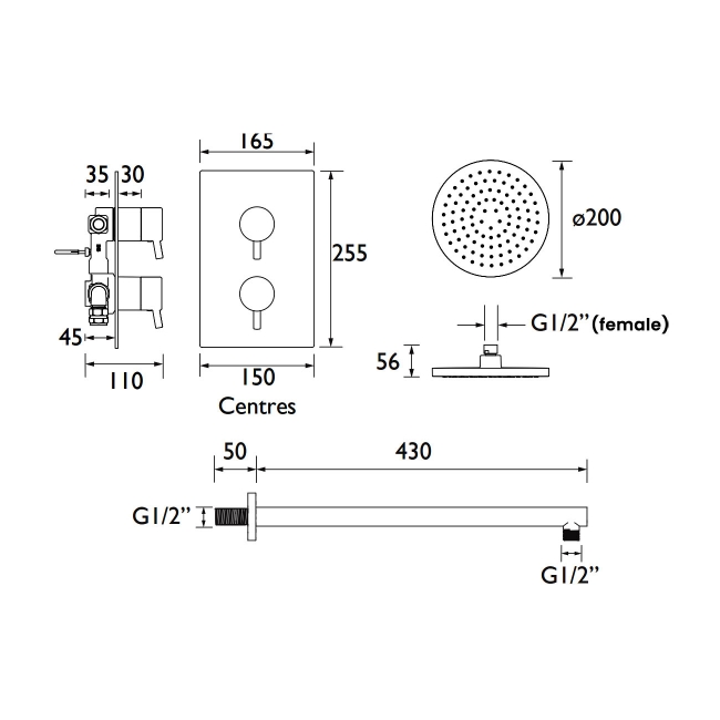• The shower valve has been designed to fit in any UK wall cavity and therefore only needs a 35mm deep cavity space