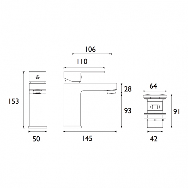 Bristan Qubo Basin Mixer Tap with Clicker Waste - Chrome | Product Image Bristan Qubo Basin Mixer Tap with Clicker Waste - Chrome