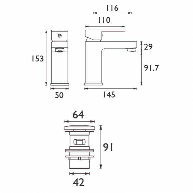 Bristan Qubo Basin Mixer Tap with Clicker Waste - Chrome | Thumbnail Image Bristan Qubo Basin Mixer Tap with Clicker Waste - Chrome