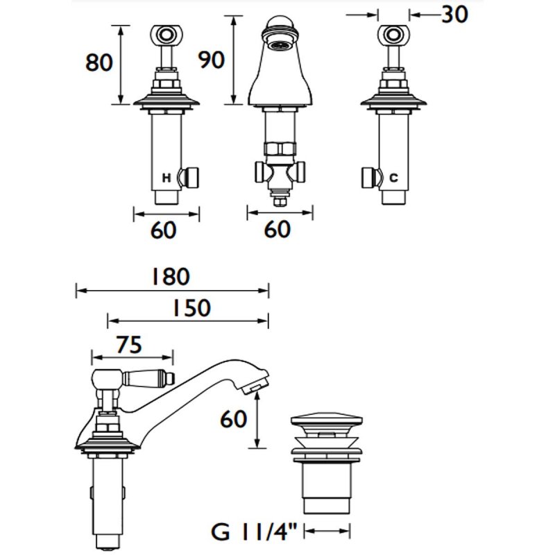 Bristan Renaissance 3 Hole Basin Mixer Tap with Pop Up Waste - Chrome Bristan Renaissance 3 Hole Basin Mixer Tap with Pop Up Waste - Chrome