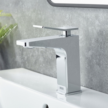Add a tap that is designed to help to reduce your energy usage with the Bristan Tangram Eco Start Basin Mixer Tap with Clicker.