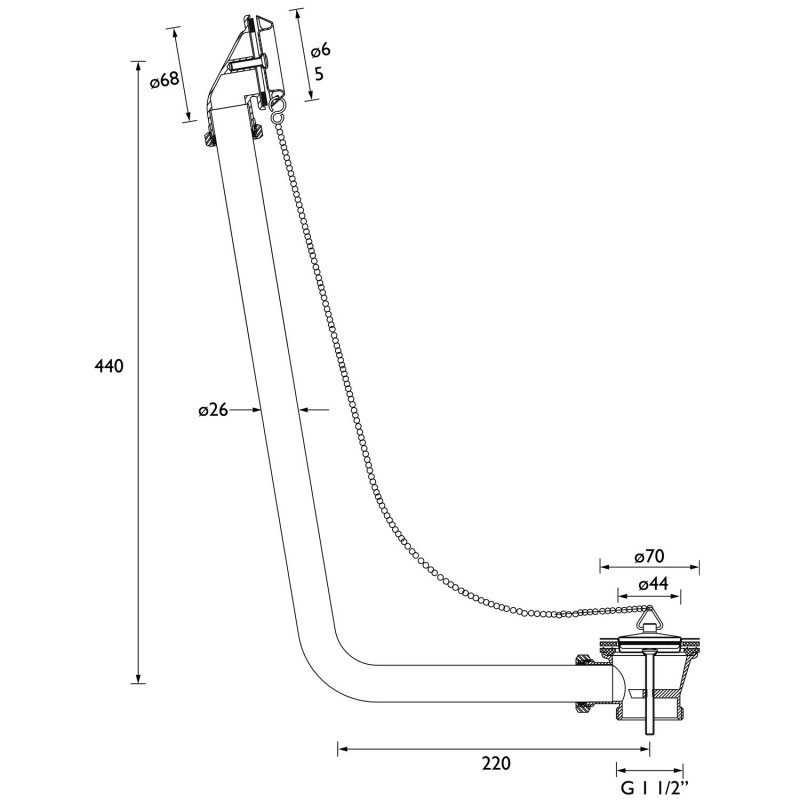 What's in the Box?1x Bath Waste, 1x Screw, 1x Sealing Washer, 1x Foam Washer, 1x Flange, 1x Waste Body, 1x Conical Washer, 1x Plug And Ball Link Chain, 1x Overflow Plate, 1x Screw, 1x Overflow Seal Washer, 1x Overflow Elbow, 1x Fixed Overflow Pipe 1x Conical Washer, 1x Nut, 1x Fitting Instructions