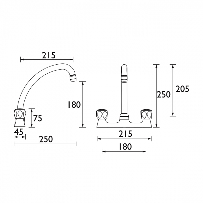 Bought as a replacement for previous identical model when the hot tap seized after 10 years.The curved neck design keeps it out of the way when rinsing dishes.