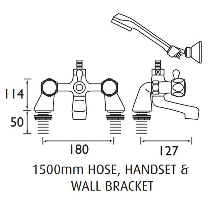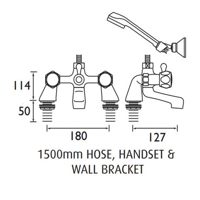 Bristan Value Club Bath Shower Mixer Tap with Metal Heads - Chrome Plated | Thumbnail Image Bristan Value Club Bath Shower Mixer Tap with Metal Heads - Chrome Plated
