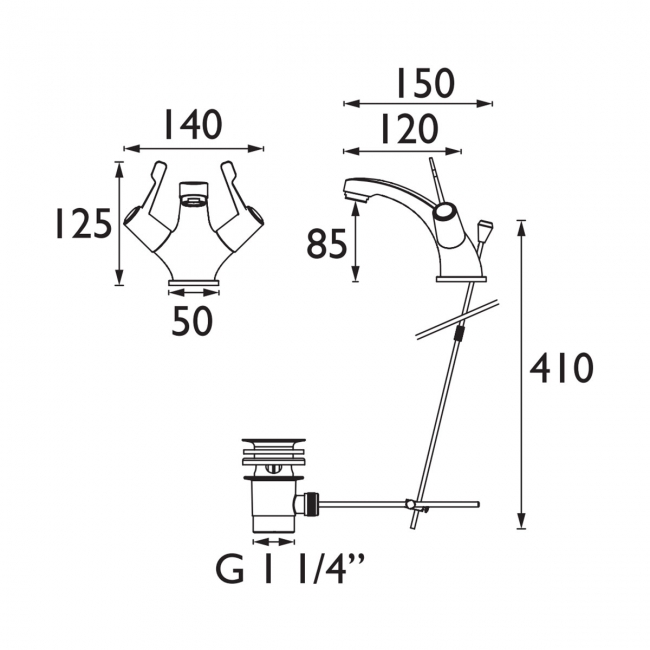 • Supplied with Pop-up slotted basin waste
