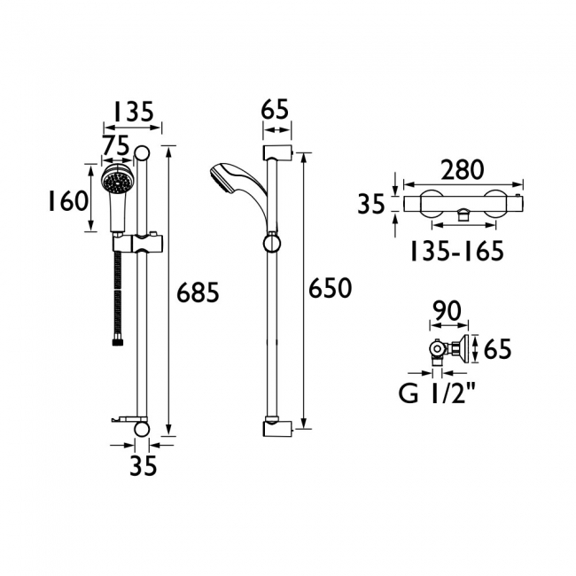 - Supplied with 1.5m hose, riser rail, hose retainer and single function handset with rub clean nozzles