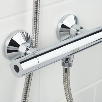 Offering simply outstanding value for money, this cool touch shower is a superb addition to any bathroom. The main benefit which this shower offers over other types of showers is the "cool touch" feature, which ensures that even when hot water is flowing through the shower, the bar remains cool to the touch. Inside the shower, the special thermostatic cartridge ensures that the temperature of the water from the shower head remains stable too, and the combination of these two functions means that this is a reliable and safe shower for all the family.