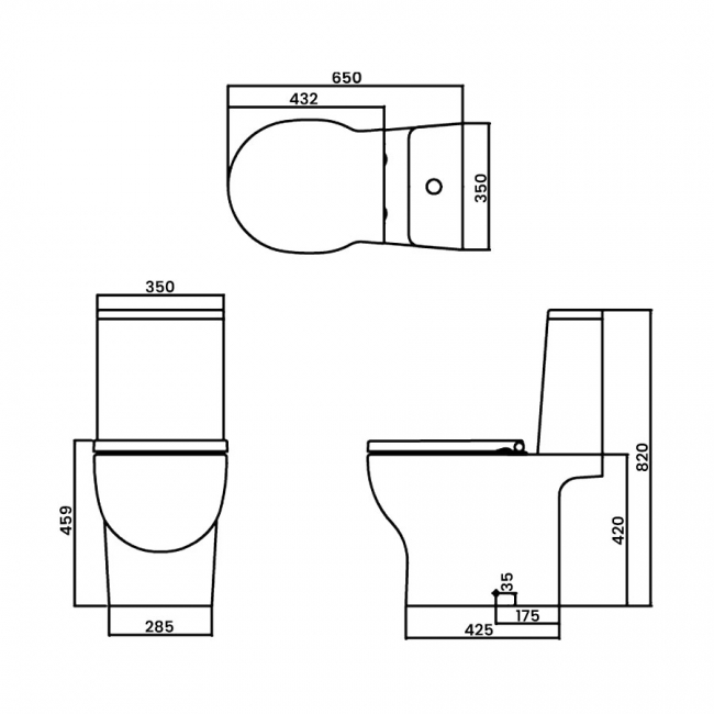 Prestige Bijoux Rimless Close Coupled Toilet with Push Button Cistern - Soft Close Seat
