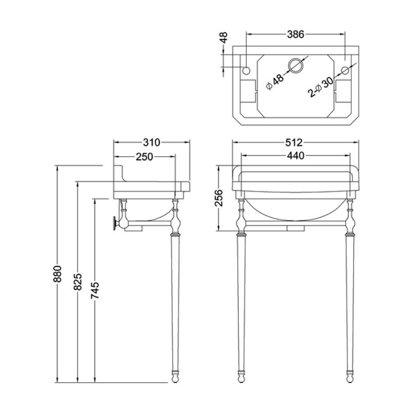 Bayswater Fitzroy Cloakroom Basin 515mm Wide 2 Tap Hole | Product Image
