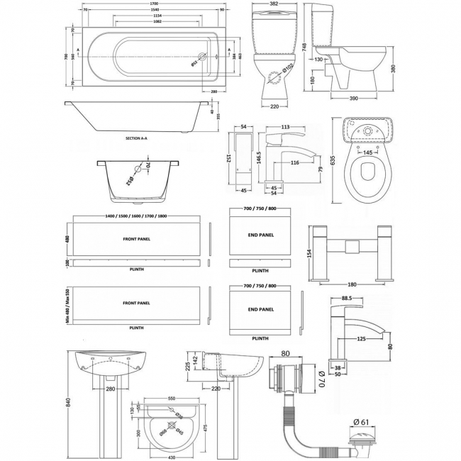 - Supplied complete with Bath Front Panel, End Panel and Bath Leg Set