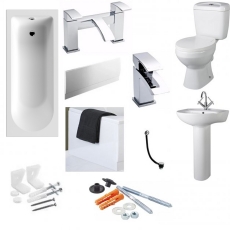The Calypso Complete Bathroom Suite Pack featuring Bath Filler Tap and Waste, Basin Mixer Tap, Full pedestal basin, Close coupled toilet and Double Ended Bath with Front Panel. Whether your bathroom is large or small the Calypso Complete Bathroom Suite can provide the perfect choice for your dream bathroom.