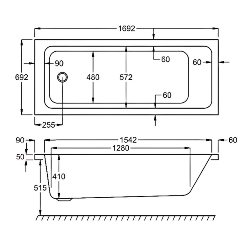 - High-tech re-inforced Acrylic bath for ultimate strength