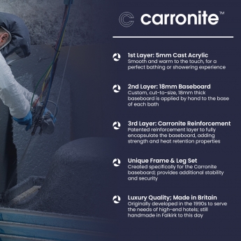 - Optional Carronite reinforcement available - delivers superior strength and excellent heat retention for a luxurious bathing experience