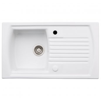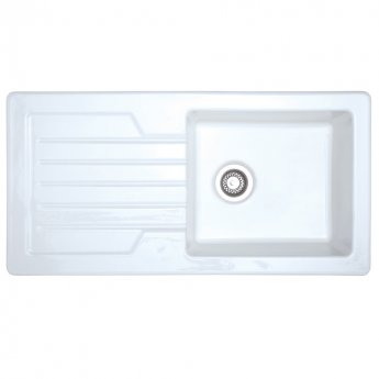 Rangemaster Tenby 1.0 Bowl Inset Ceramic Kitchen Sink with Waste Kit 850mm L x 500mm W - White