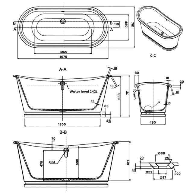FromSignature Perseus Double Ended Freestanding Bath with Integrated Waste