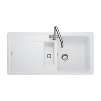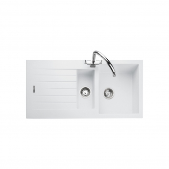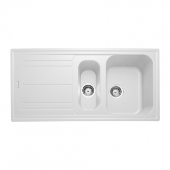 Prima+ Granite Composite 1.5 Bowl Inset Kitchen Sink with Waste Kit 1000mm L x 500mm W - White