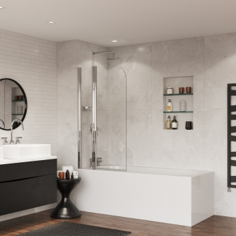 The Coram Frameless Compact Curved Bath Screen 800mm comes with a whole host of features, including Coram's patented unique levelling system. The fixed panel on the Coram Frameless Compact Curved Bath Screen 800mm makes it perfect for high performance power showers, and provides added protection. Toughened safety glass and a corrosion-resistant aluminium frame make Coram Bath Screens exceptional value for money.