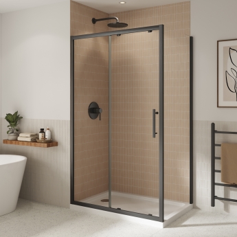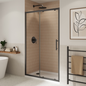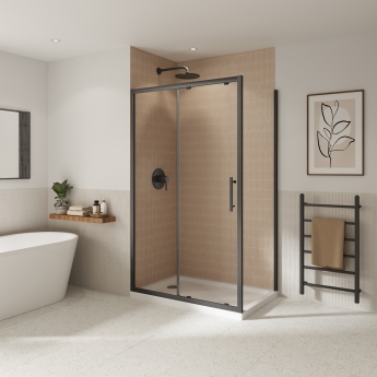 Coram Optima 6 Brushed Black Sliding Shower Door - 6mm Glass | Product Image Coram Optima 6 Brushed Black Sliding Shower Door - 6mm Glass | Product Image Coram Optima 6 Brushed Black Sliding Shower Door - 6mm Glass | Product Image Coram Optima 6 Brushed Black Sliding Shower Door - 6mm Glass | Product Image