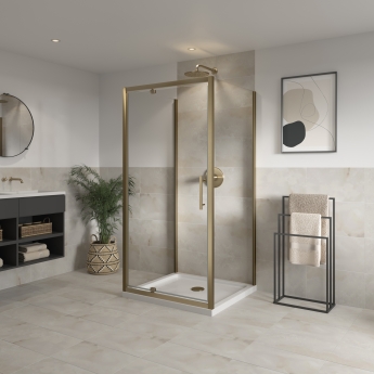 A contemporary semi-frameless pivot door design, which is ideal for smaller spaces. Featuring smooth rise and fall hinges, ultra-clear seals and stay clean glass as standard.