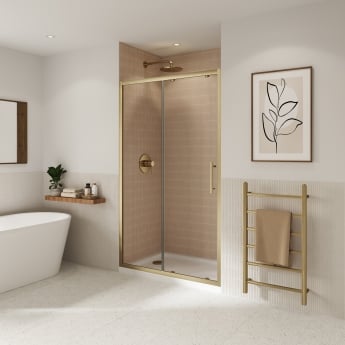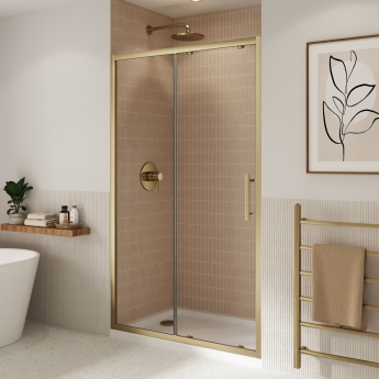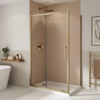 Coram Optima 6 Brushed Gold Sliding Shower Door - 6mm Glass | Thumbnail Image Coram Optima 6 Brushed Gold Sliding Shower Door - 6mm Glass | Thumbnail Image Coram Optima 6 Brushed Gold Sliding Shower Door - 6mm Glass | Thumbnail Image Coram Optima 6 Brushed Gold Sliding Shower Door - 6mm Glass | Thumbnail Image