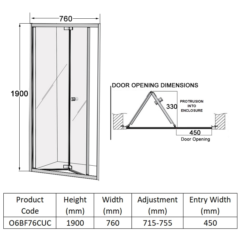 Door Frame Adjustment 715mm - 755mmSide panel extra if required for corner installation