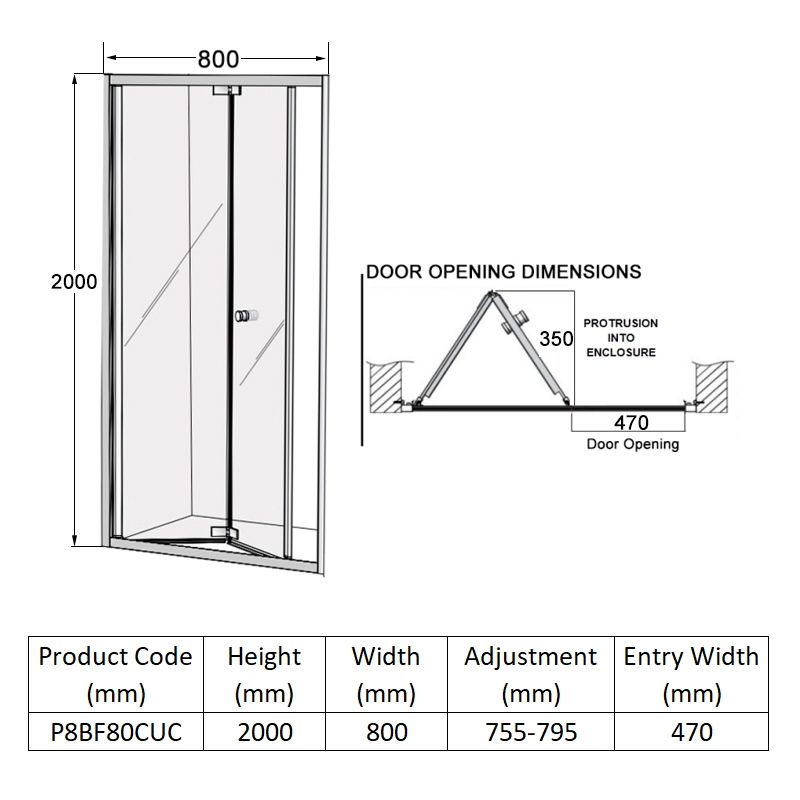 Shower Door Width800mm