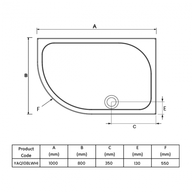 - Left Handed offset quadrant shower tray measuring 1000mm x 800mm