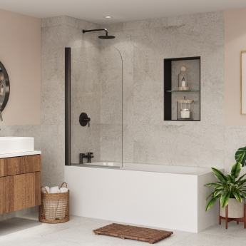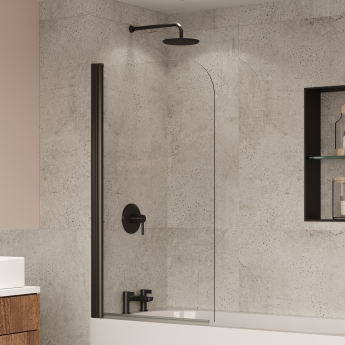 The Coram Curved Bathscreen is 800mm wide and has a high quality black finish. It is made with toughened safety glass and is CE tested and certified. It has lots of easy to clean features, and is easy to fit with its unique levelling system. The Bathscreens are also very stylish, with a wide array of shapes, styles, and sizes to choose from.