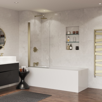 Coram Brushed Gold Frameless Square Hinged Bath Screen 1400mm H x 800mm W - 5mm Glass | Product Image Coram Brushed Gold Frameless Square Hinged Bath Screen 1400mm H x 800mm W - 5mm Glass | Product Image Coram Brushed Gold Frameless Square Hinged Bath Screen 1400mm H x 800mm W - 5mm Glass