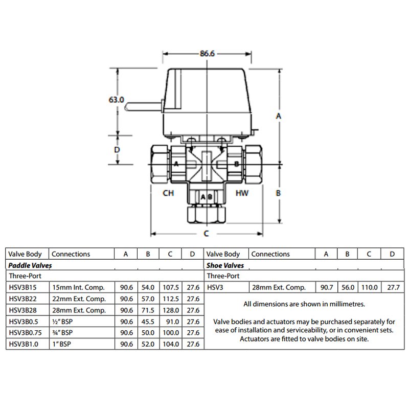 Danfoss Randall HS3 22mm Motorised Three Port Mid-Position Valve | Product Image Danfoss Randall HS3 22mm Motorised Three Port Mid-Position Valve