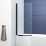 Delphi Faith Matt Black P-Shaped Hinged Bath Screen 1435mm H x 730mm W - 6mm Glass | Thumbnail Image Delphi Faith Matt Black P-Shaped Hinged Bath Screen 1435mm H x 730mm W - 6mm Glass