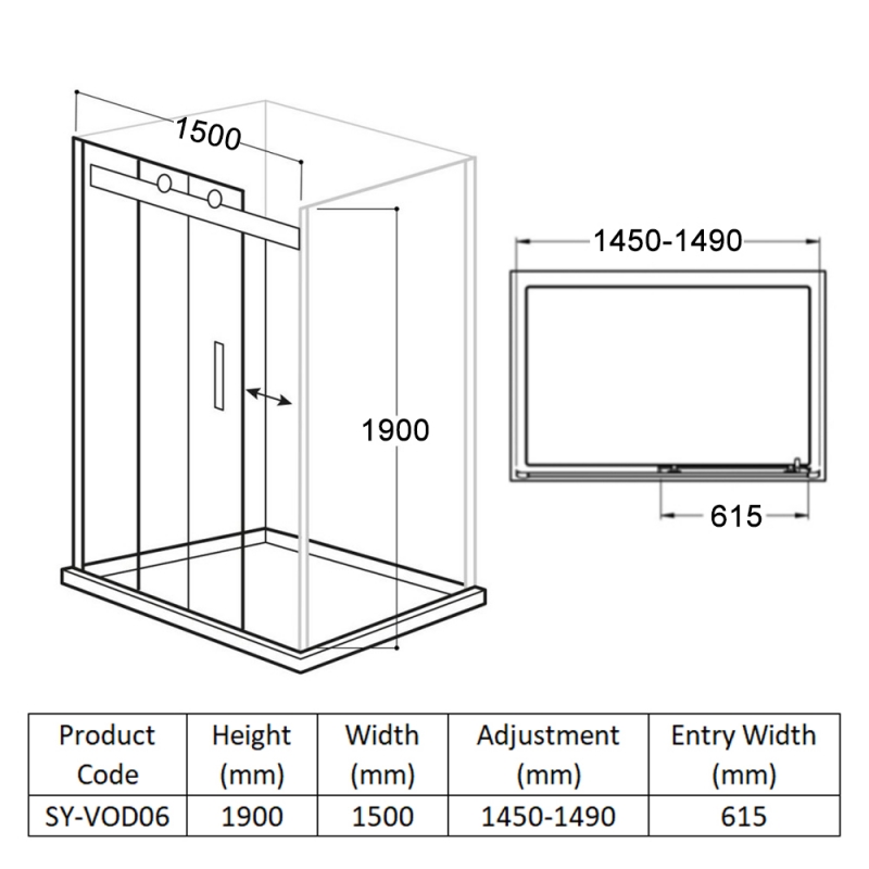 Shower Door Width1500mm