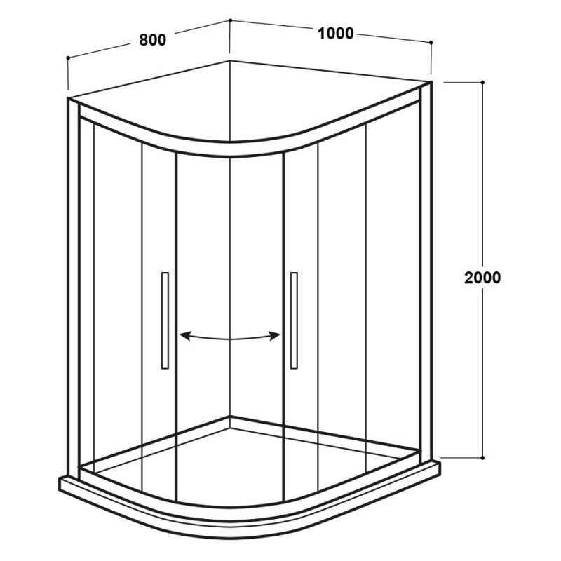 - 1200mm x 800mm offset quadrant shower enclosure with double sliding doors