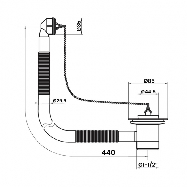 Deva 1 1/2 Inch Kitchen Sink Waste with Overflow - Chrome