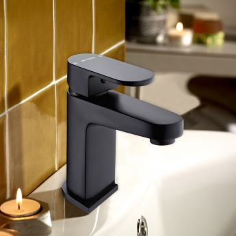 Deva Amio Mono Basin Mixer Tap with Press Top Waste - Matte Black | Product Image Deva Amio Mono Basin Mixer Tap with Press Top Waste - Matte Black | Product Image Deva Amio Mono Basin Mixer Tap with Press Top Waste - Matte Black