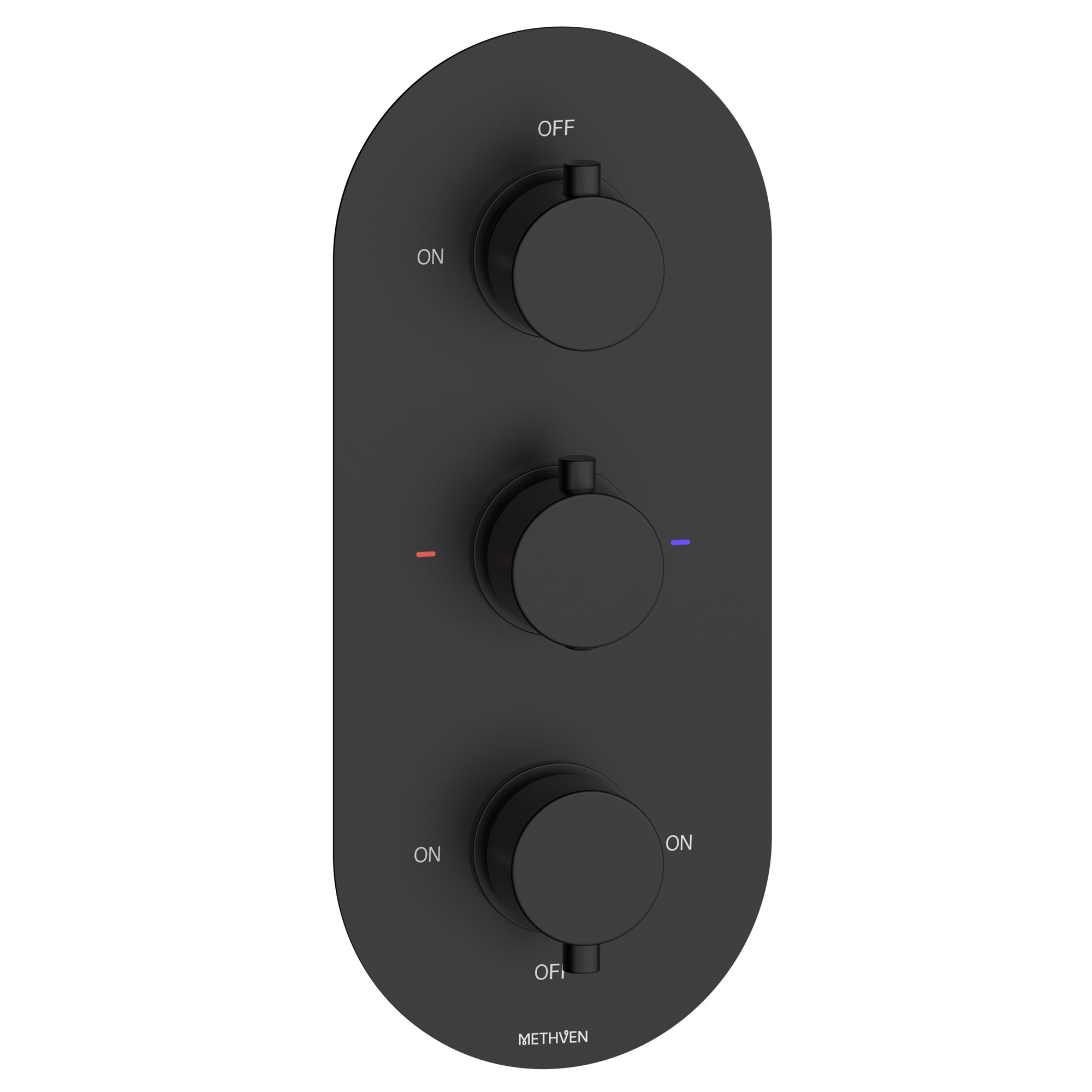 Deva Como Thermostatic Concealed Shower Valve Triple Handle - Matt Black