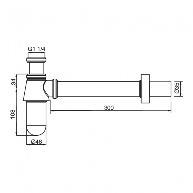 Deva 1 1/4 Inch Bottle Trap with Wall Extension - Chrome Deva 1 1/4 Inch Bottle Trap with Wall Extension - Chrome