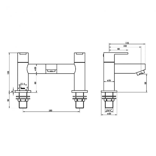 Deva Ethos Pillar Mounted Bath Filler Tap - Matt Black | Thumbnail Image Deva Ethos Pillar Mounted Bath Filler Tap - Matt Black