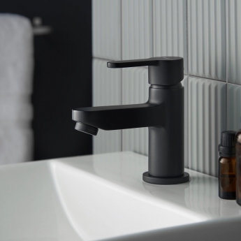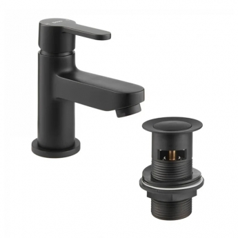 Deva Ethos Single Lever Mini Basin Mixer Tap with Waste - Matt Black