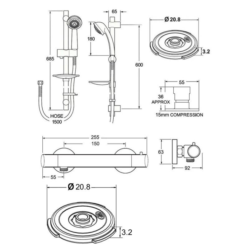 The Deva Vision Thermostatic Bar Shower Valve with Kit & Flow Regulator 8 Litres, Chrome is extremely extra ordinary shower kit which gives modern look to your bathroom. It's Sparkling and eye catching chrome finish gives more decent and classic touch to your modern bathroom. Tested to TMV2 Buildcert standards for thermostatic performance, reducing the risk of scalding by accurately controlling the water temperature