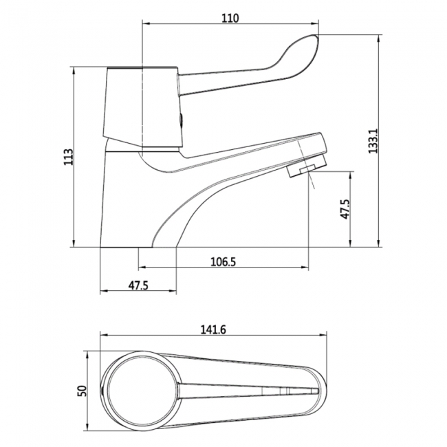 Tap Base to Spout47.5mm