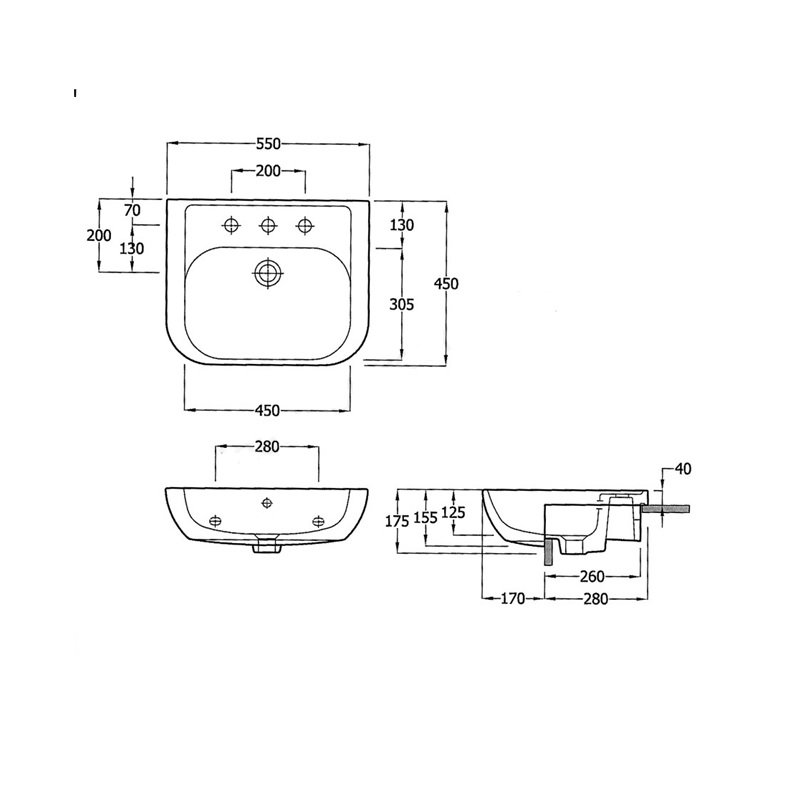 Signature Indus Semi-Recessed Basin 500mm Wide - 1 Tap Hole