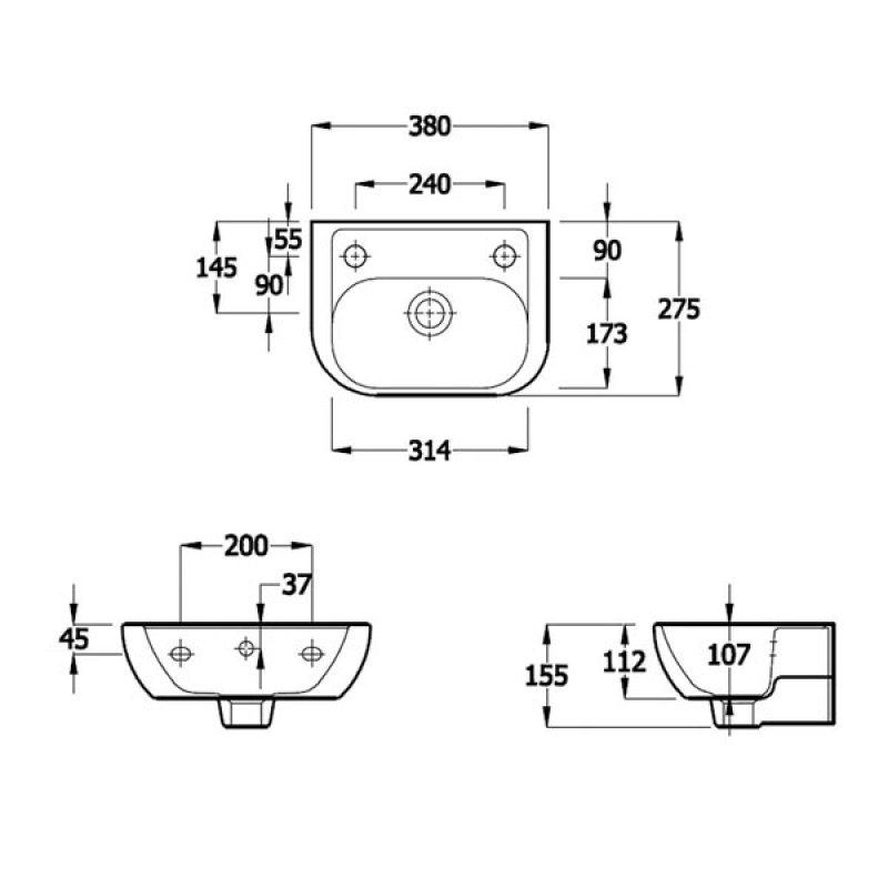 RAK Compact Special Needs HO Cloakroom Basin 380mm Wide - 0 Tap Hole | Product Image