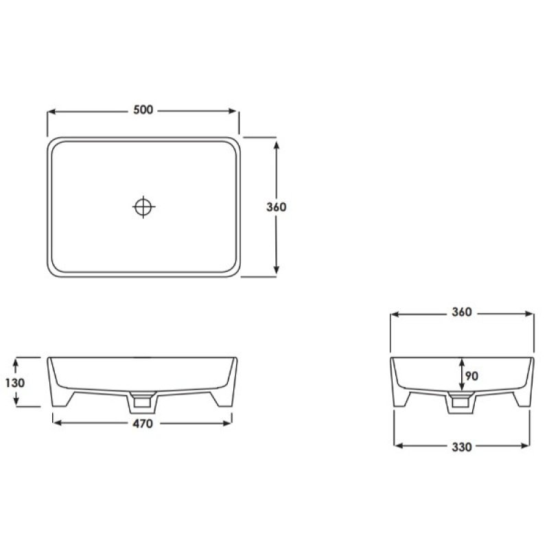 Orbit Riviera Rectangular Sit-On Countertop Basin 465mm Wide 0 Tap Hole - Gloss White