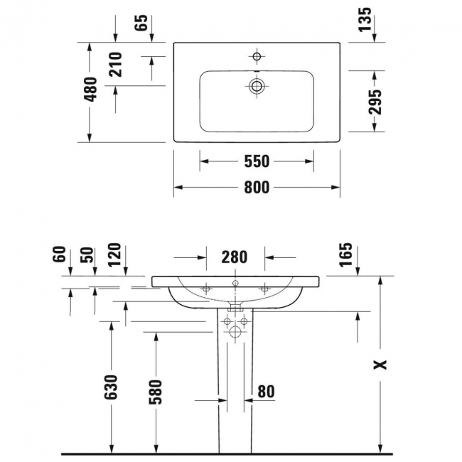 Duravit D-Code Basin and Full Pedestal 800mm Wide - 1 Tap Hole Duravit D-Code Basin and Full Pedestal 800mm Wide - 1 Tap Hole